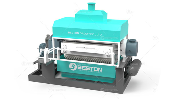 蛋托機屬于紙漿模塑設備,使用蛋托模具將廢紙等原料加工成蛋托制品。過程為將作為廢紙等原材料經過紙漿系統處理成濃漿,進入勻漿池進行攪拌,調制合適的濃度后泵送入成型系統,根據成型機不同的模具形狀加工成不同類別的蛋托制品,最終由烘干系統蒸發制品多余水分,蛋托烘干系統可以采用金屬烘干室和磚砌烘干。